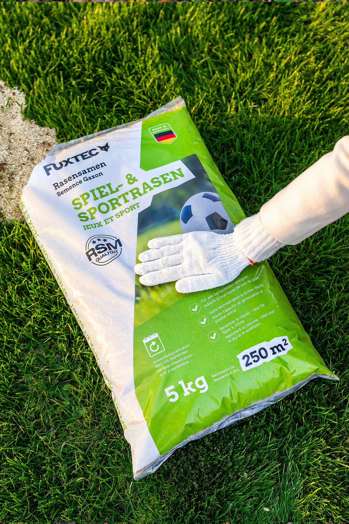 Per ottenere un prato uniforme e fitto, la quantità corretta di sementi è fondamentale. Con miscele di alta qualità come il prato sportivo e da gioco FX-RSSP10 di FUXTEC, si consiglia una dose di circa 30–35 g per metro quadrato. Questa quantità garantisce che il prato non cresca troppo rado né venga ostacolato nello sviluppo da una semina eccessivamente fitta.